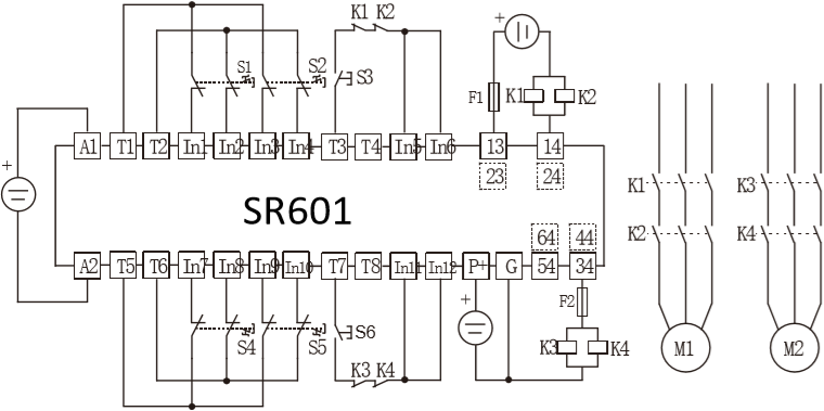 | SR601 series safety controller Can simultaneously receive 6 groups of safe light spot signals Input and output mode can be customized input: six groups of safety light spot signals for logic programming Combine according to the scene |